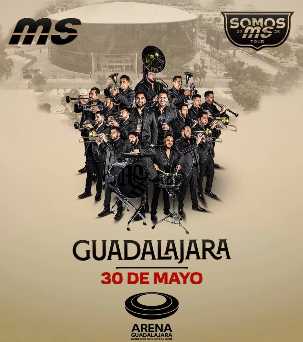 La exitosa Banda MS de Sergio Lizárraga regresa a Guadalajara, Jalisco, para ofrecer un espectacular concierto el 30 de mayo de 2026 en la imponente Arena Guadalajara, como parte de su esperada gira “Somos MS Tour 2026”. Este evento se perfila como uno de los conciertos más importantes del año en la Perla Tapatía, reuniendo a miles de fans del regional mexicano en una noche llena de emoción, romanticismo y grandes éxitos.