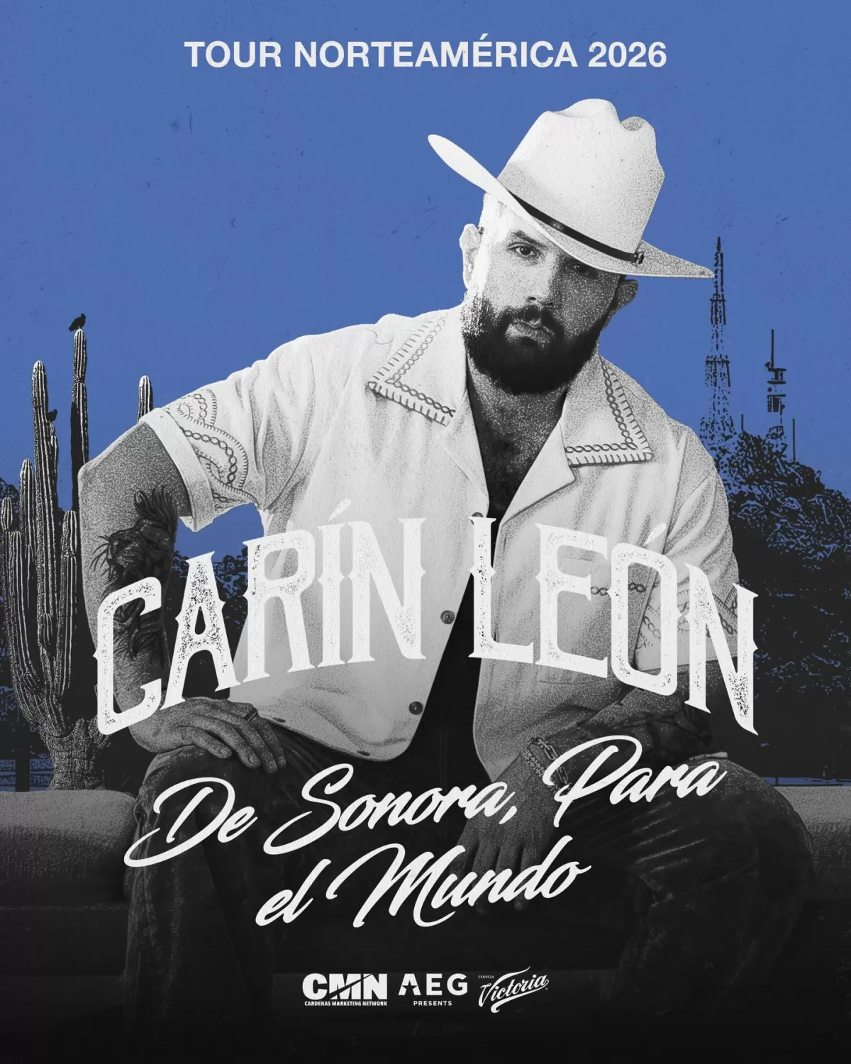 Carín León, uno de los máximos exponentes de la música regional mexicana a nivel internacional, anuncia oficialmente su esperado Tour Norteamérica 2026 “De Sonora para el Mundo”, una gira histórica que lo llevará a recorrer decenas de ciudades en Estados Unidos y Canadá. Este tour reafirma el impacto global del artista sonorense, quien ha logrado conectar con millones de seguidores gracias a su estilo auténtico, su poderosa voz y su capacidad de fusionar lo tradicional con lo contemporáneo.