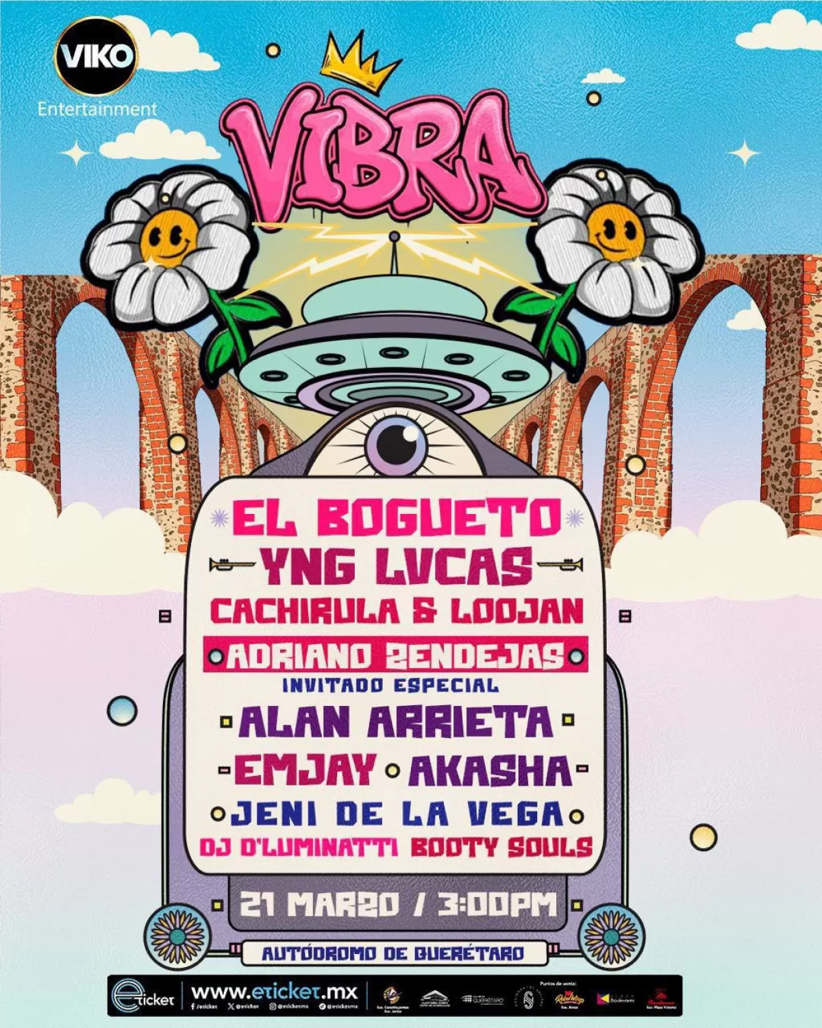 El Festival VIBRA se prepara para encender Querétaro el próximo 21 de marzo, consolidándose como una de las propuestas más atractivas de la temporada primaveral. Con una mezcla de ritmos urbanos, electrónicos y alternativos, este festival promete una jornada llena de energía, música y experiencias visuales para el público asistente.