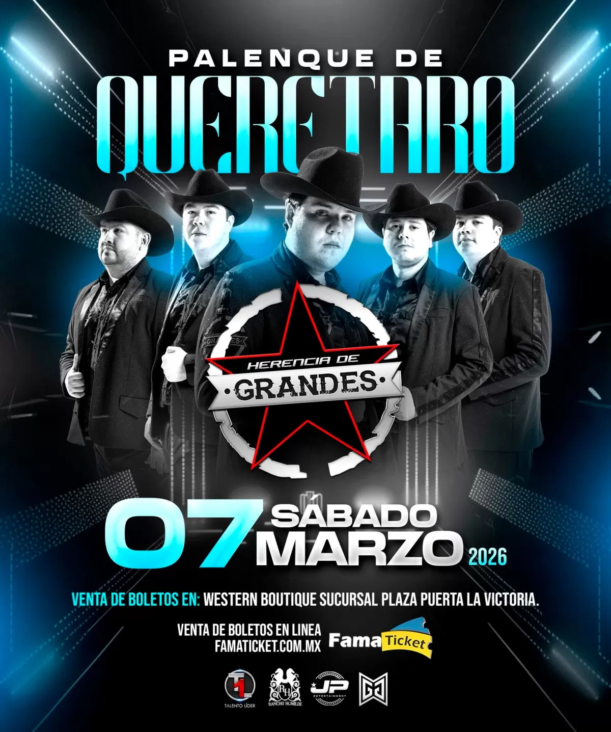 La música del regional mexicano llegará con gran fuerza a Querétaro con la esperada presentación de Grupo Herencia de Grandes, quienes se presentarán el sábado 7 de marzo de 2026 en las Instalaciones del Palenque. Este evento promete convertirse en uno de los espectáculos más destacados de la temporada para los amantes del género.